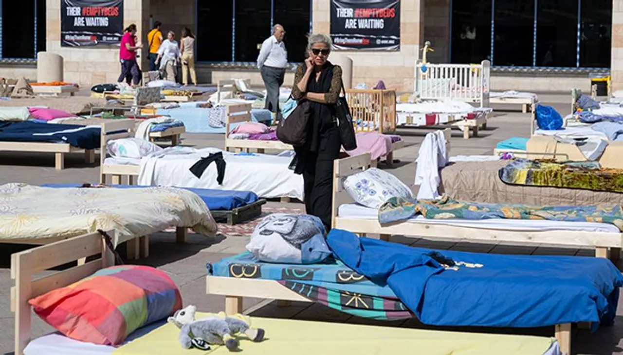 The article details the poignant 'Empty Beds' art installation in Jerusalem's Safra Square symbolising hope amidst the hostage crisis in Gaza, shedding light on the families' stories, grief, and resilience.