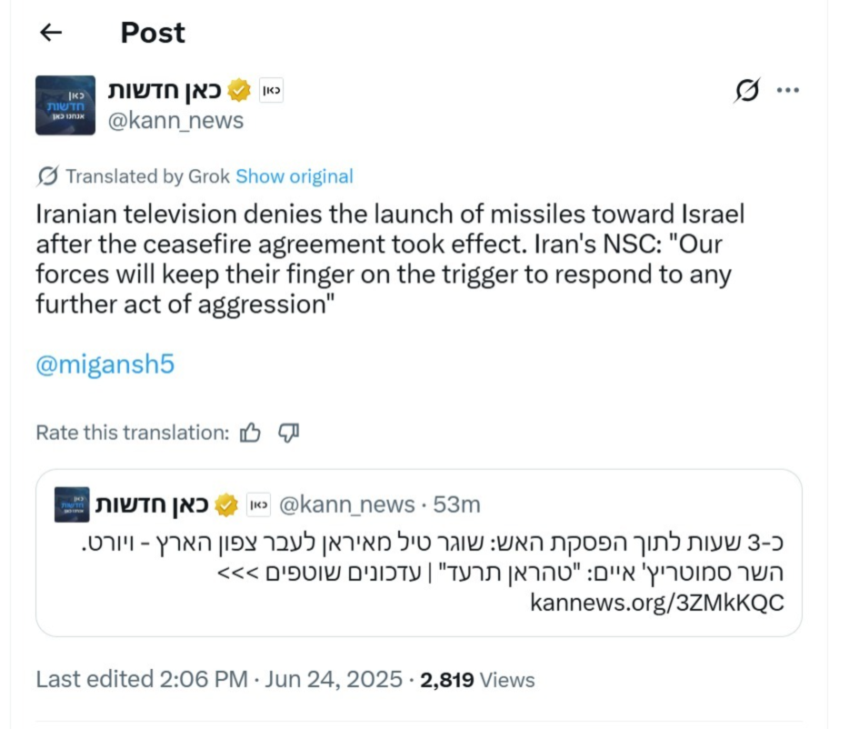 Brigadier General Effie Defrin, spokesperson for the Israel Defense Forces (IDF), briefed the public following the announcement of a ceasefire between Israel and Iran earlier. He confirmed that, as per the directive from Israel’s political leadership, the ceasefire officially came into effect earlier this morning.