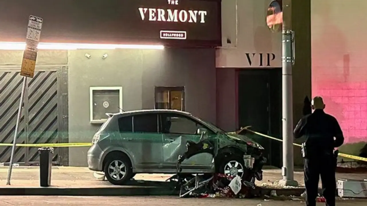 At least 30 people were injured, including seven critically, after a car ploughed into a crowd outside a nightclub in Los Angeles. The driver, believed to be intoxicated, was assaulted and shot by bystanders before receiving medical aid.