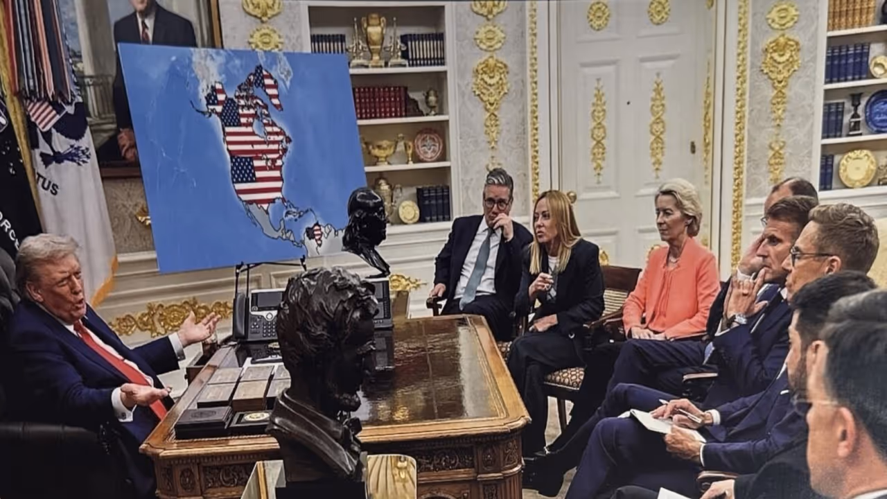 Trump also shared AI-generated images of himself establishing Greenland as US territory with US Vice President JD Vance and Secretary of State Marco Rubio. He also shared another AI-generated image of himself speaking to European leaders with a Map of the US showing Greenland and Canada as US territories in the background.