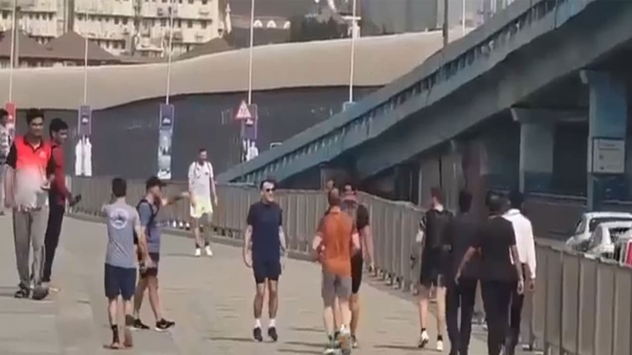 With the onset of morning in Mumbai on Tuesday, French President Emmanuel Macron surprised the Mumbaikers by joining the rush of morning walkers in the city. The French President was seen jogging with a team of security personnel, including French and Indian officials. The jog proceeded peacefully, with minimal disruption from the media and locals along the route. Wearing a navy blue T-shirt and black sunglasses, Macron decided not to disrupt his fitness routine despite being in a foreign country, ahead of a long day of diplomatic meetings.