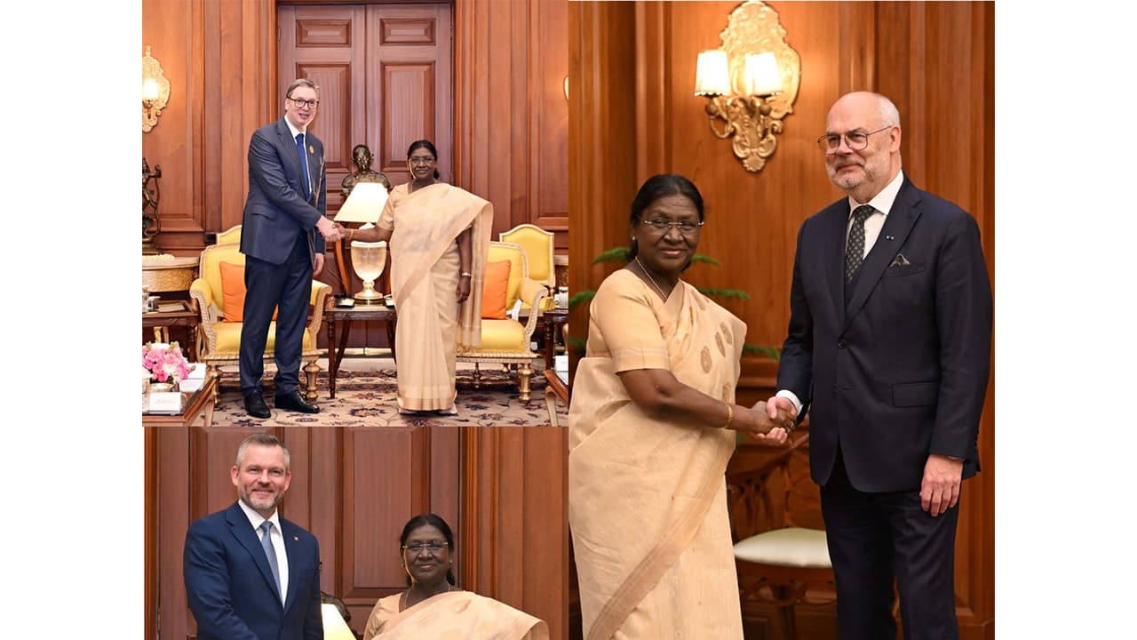 President Droupadi Murmu on Thursday held high-level meetings with the Presidents of Estonia, Slovakia and Serbia at the Rashtrapati Bhavan, emphasising enhanced cooperation in artificial intelligence (AI), digital technologies, trade and bilateral partnerships as part of the world leaders' visit to the country for the India AI Impact Summit 2026. The engagements coincided with the ongoing summit, highlighting the role of technology in promoting inclusive growth and global development.