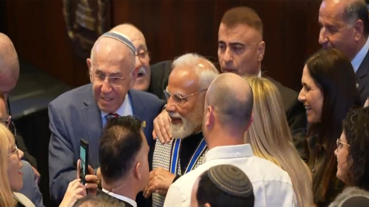 It was a day marked by symbolism, warmth and strategic messaging as Prime Minister Narendra Modi began his Israel visit with a moment that captured the spirit of the relationship, a standing ovation inside the Special Plenary of the Knesset. As applause echoed through the chamber, Israeli lawmakers rose to acknowledge the Indian leader, capping his address with the conferment of the prestigious "Speaker of the Knesset Medal", the highest honour awarded by the Israeli Parliament. The recognition was bestowed for his "exceptional contribution through his personal leadership" in strengthening India-Israel ties, making PM Modi the first foreign leader to receive the distinction.