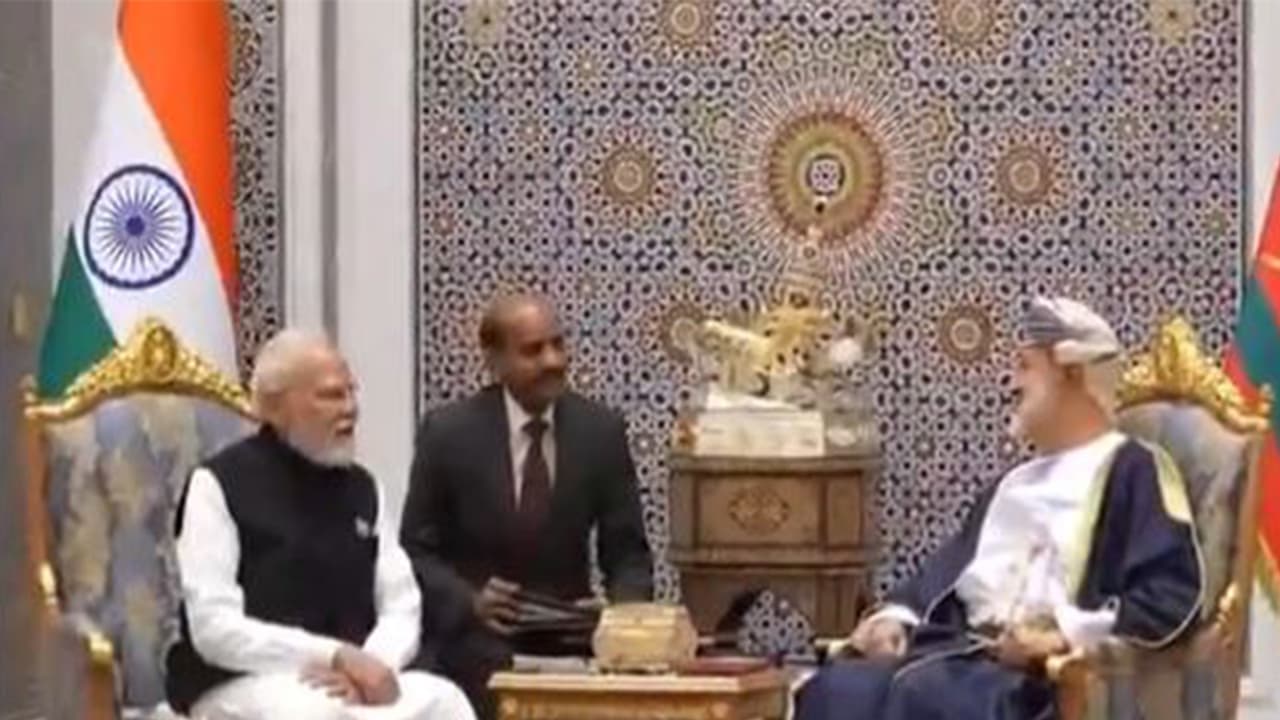 Prime Minister Narendra Modi was received by the Oman Sultan Haitham bin Tariq Al Said at Al Baraka Palace on Thursday, where the two leaders held discussions.
