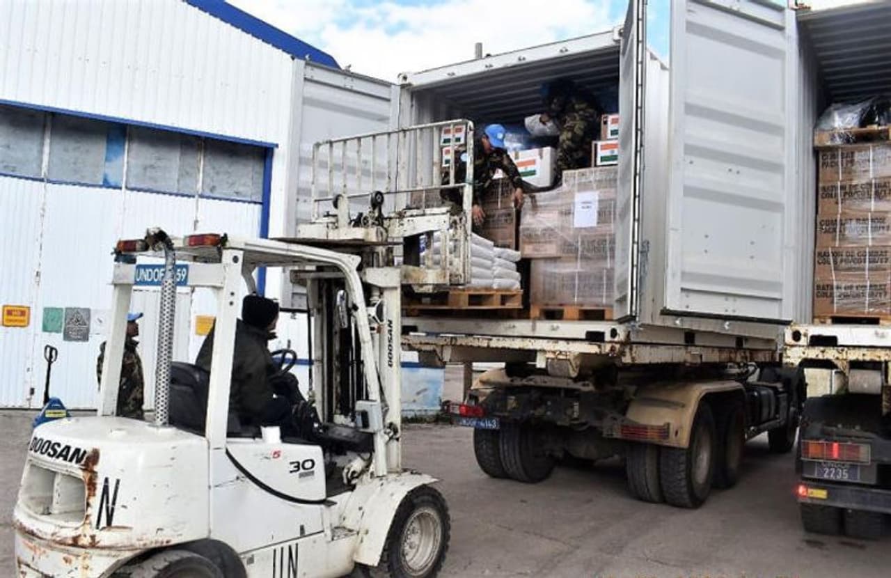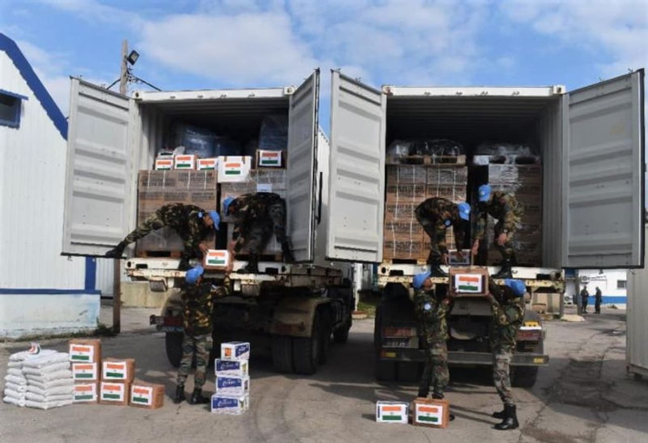 The first convoy transported relief material, pooled from the Indian government and the international community, consisting of rations and medicines to Allepo in Syria on February 15. The relief material has been handed over to representatives of the local administration at Allepo.