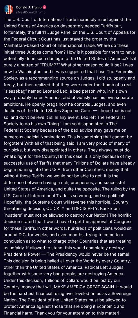 The short-term relief will allow the appeals process to proceed, after the US Court of International Trade on Wednesday barred most of the tariffs announced since Trump took office, ruling that he had overstepped his authority.