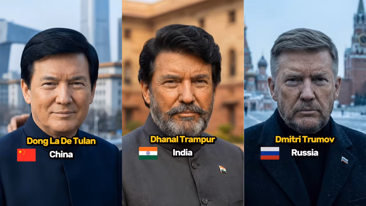 In the Indian version, Trump appears as “Dhanal Trumper,” dressed in a traditional Jodhpuri-style coat. Another edit places him in Russia as “Dmitry Trumov,” standing in front of Red Square. The video also features Italy’s “Donaldo Trombi,” China’s “Dong Le Di Tulan,” Nigeria’s “Donal Okorompa,” and England’s “Sir Donald Trumpton”.